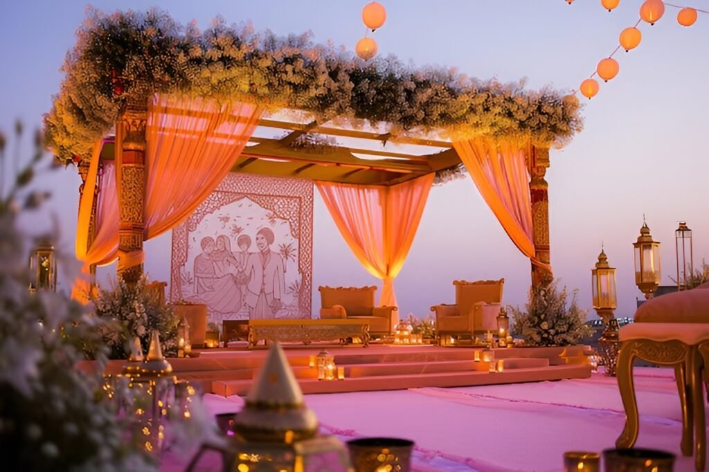 Beautiful stage setups, mandap decoration, floral arrangements, lighting, and customized themes to match your vision and tradition.